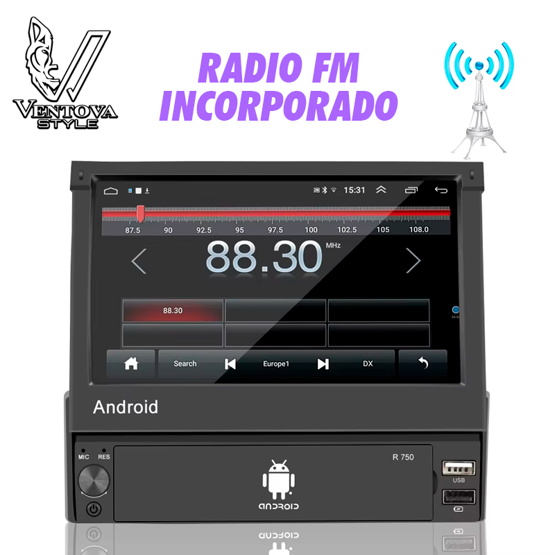 - Autoradio Android, Reproductor multimedia para automóvil 1DIN con sistema Android. Pantalla táctil, retráctil manual.